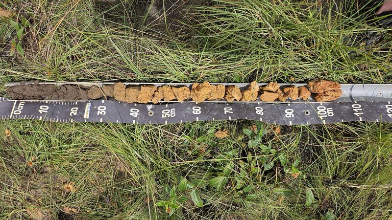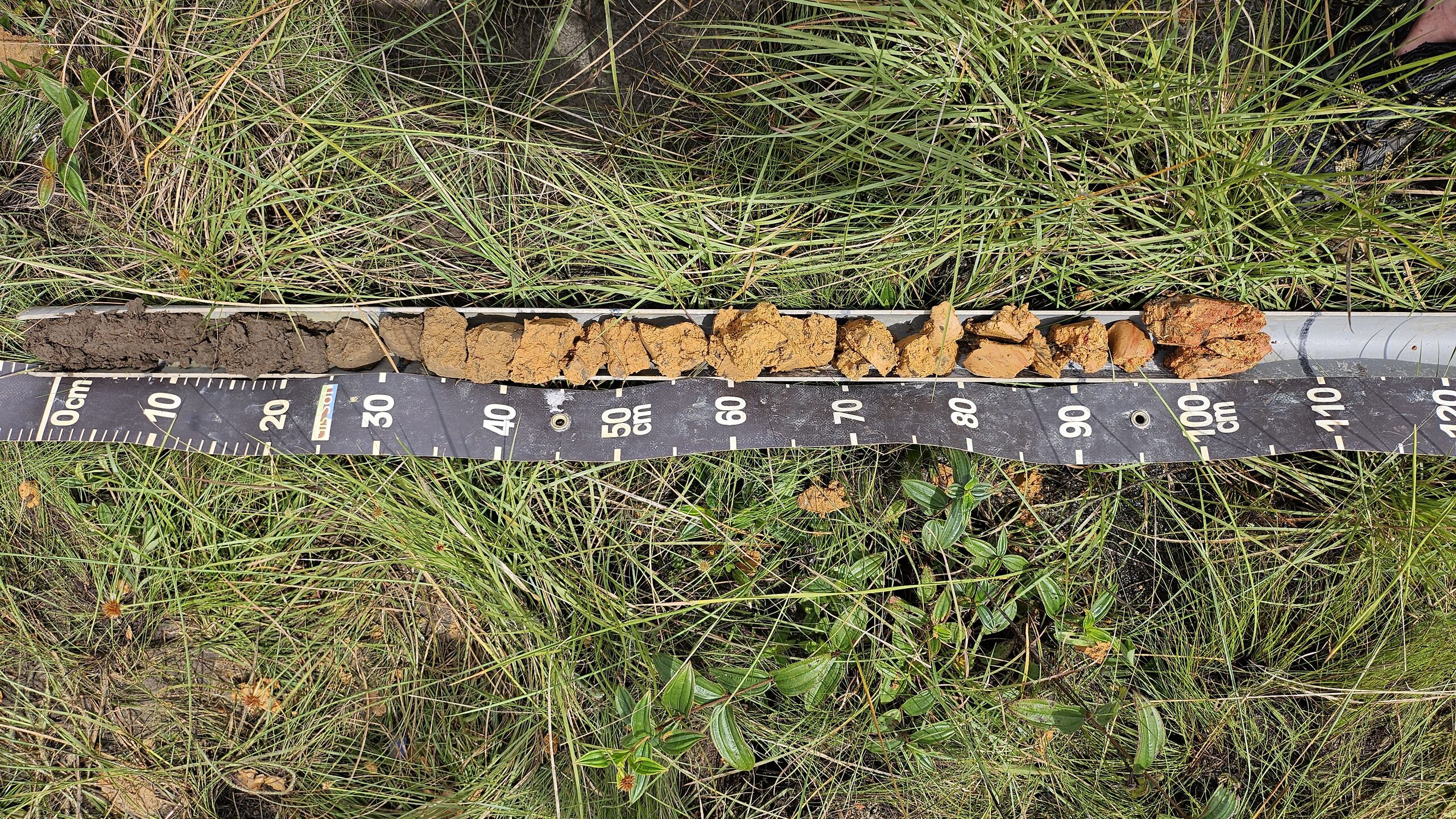 Reconstitution d’un sondage réalisé à la tarière manuelle (© photo Ch. Ducommun).
